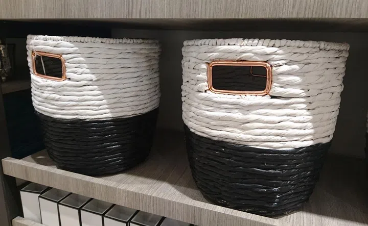 Stylish laundry baskets are so hard to find! You can also stash reading material in these black-and-white baskets, or use them to cover ugly plastic plant pots. $99.90 each.