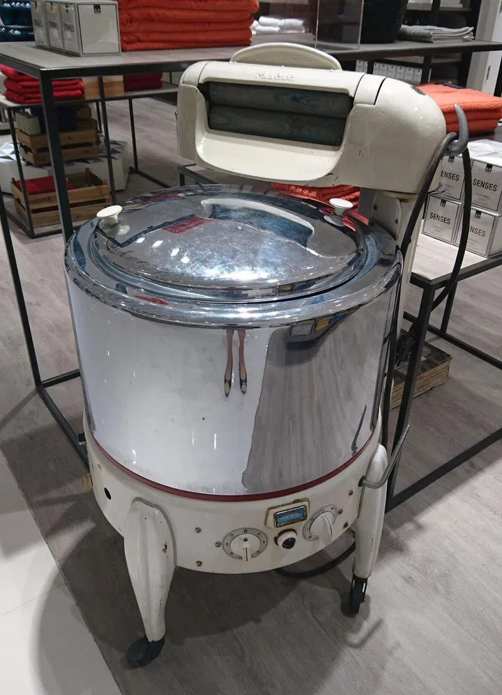 This is not for sale, but we thought this vintage Miele washing 'machine' on display in the home accessories area is such a curiosity!