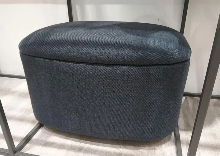 I like the men's suiting-type material on the Helsinki storage ottoman ($399 on sale). Coupled with the right colour scheme, these dark tones are very on-trend now. Plus it gives you extra storage, too!