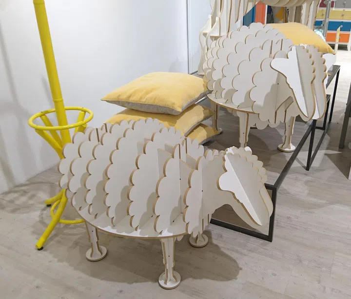 Cute sheep you can also use as a bookshelf for your child's books. They didn't have a price tag, but we asked and the friendly sales staff said they are $1,000 each.