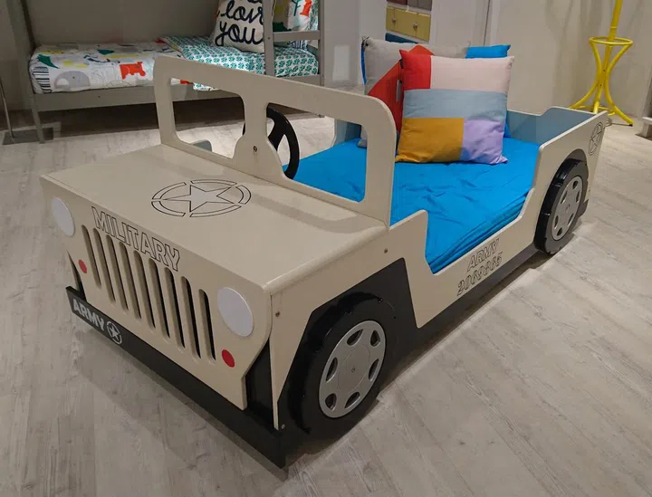 How adorable is this! An Army Jeep children's bed, which even comes with a steering wheel. Your little boy (or girl) will love this. Jeep bedframe on sale now at $799.