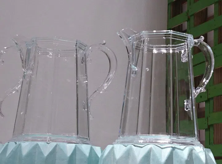 Thank goodness this clear water jug isn't glass, but acrylic! It's light to carry and move around, plus there's less danger of breakage. We would put flowers in this. Price unavailable.