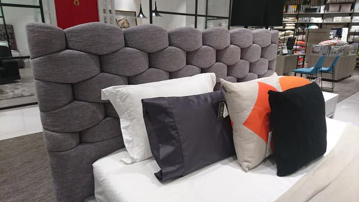 I love how the design of this fabric bedframe makes it look like thick chunky weaves! It's a great way to add texture to your room. Maclean King-size bedframe, on sale now at $2,799.