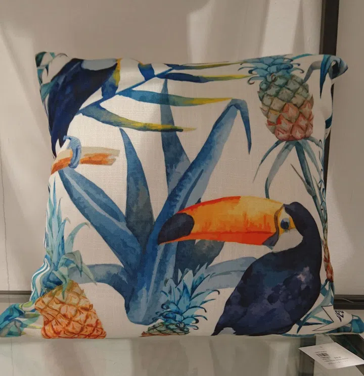Nothing says tropical style better than a toucan and pineapples, don't you think? Scatter this brightly-coloured cushion on a plain-coloured sofa for impact. Price unavailable.