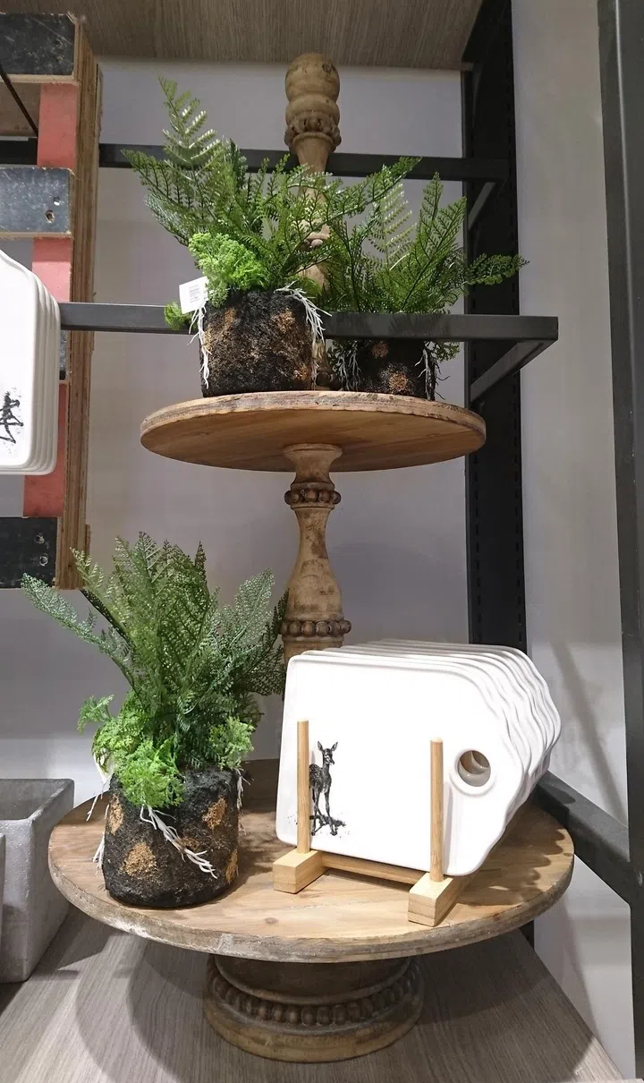 Make a statement with your display items with the Hickson timber stand, which looks like a giant version of a multi-tier cake stand. Priced at $379.