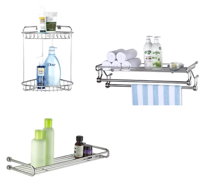 Photos: Two-tier corner rack ($98), multi-purpose rack with two rails ($188), multi-purpose rack (from $59)