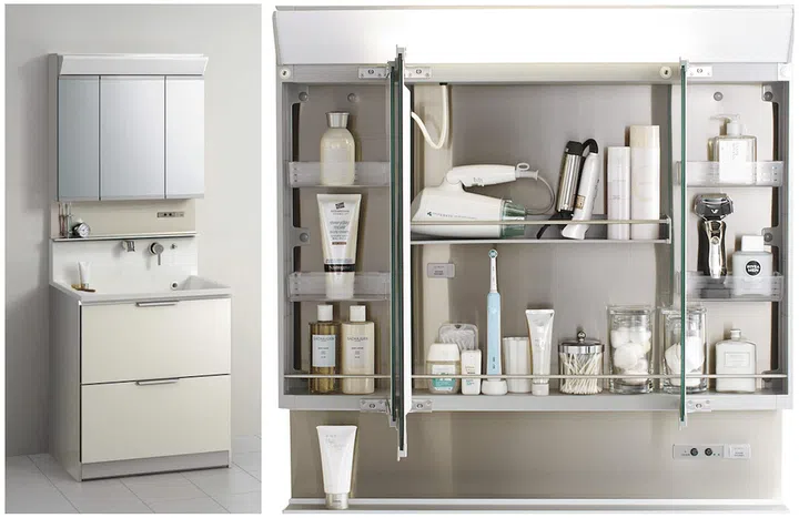 Japanese brand Cleanup combines stainless steel and wood to create an ergonomically designed, durable bathroom vanity that fits perfectly with any home style. There are lots of compartments in the shelves incorporated behind the mirror, so you can be assured that your bathroom counters will be neat and tidy.