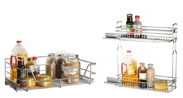 Photos: Pullout basket (from $180), wide side rack storage ($158)