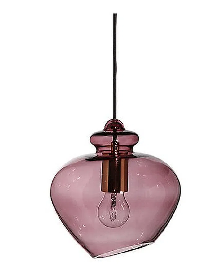 Grace by Frandsen pendant lamp: We love the soft and elegant pink hue of this glass pendant! From Three Cubes Lightings, priced at $439.