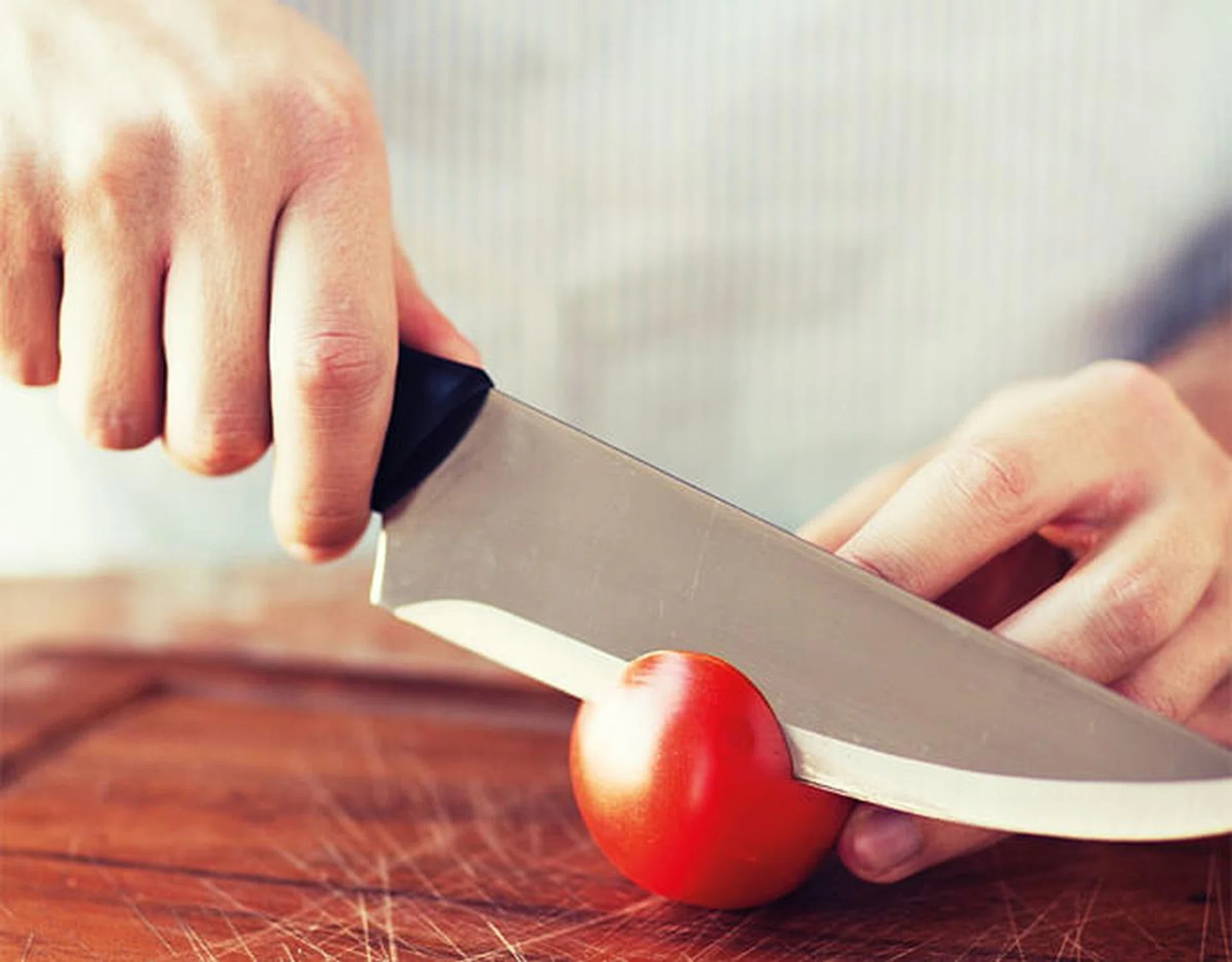It shouldn’t be too heavy or light for you. Your hand will tire easily with a knife that’s too hefty while one that’s too light may not be suitable for handling hardier foods like pumpkins and watermelons. Also consider what you’re comfortable with – some prefer a heavier knife as it falls with more force while others prefer a lighter one that is easier to manoeuvre, says Cath Fleet, trainer at Expat Kitchen.