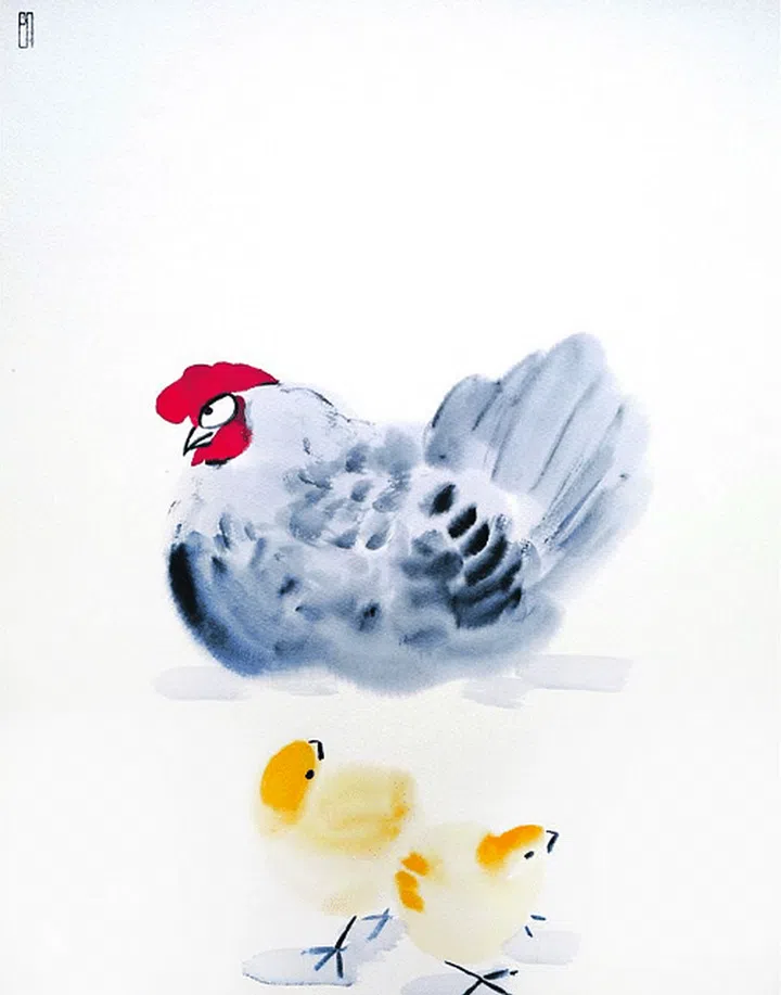 New Year, $ 2,800, from Utterly Art The 2015 UOB Painting of the Year Gold Award winner Aaron Gan marks his 7th solo show at Utterly Art, with traditionally painted chickens.