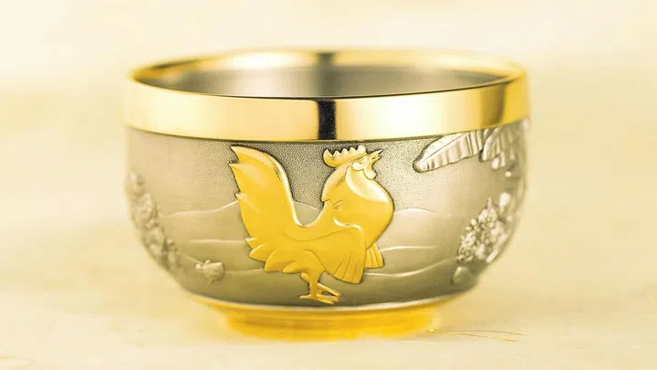 A few stalks of pussy willow or plum blossoms will add a festive touch, especially in this gold stamped vase with a rooster engraved on it. There are only 888 pieces worldwide.