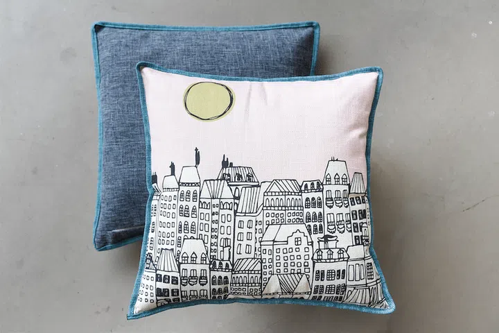 Townscape cushion cover by Glenn Phua, $39.90, from The Art Faculty.