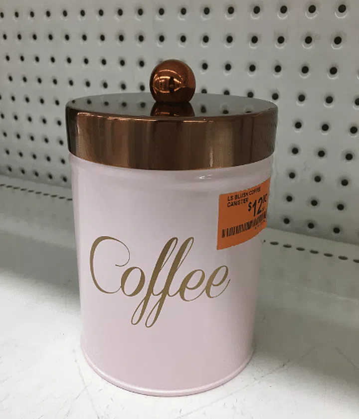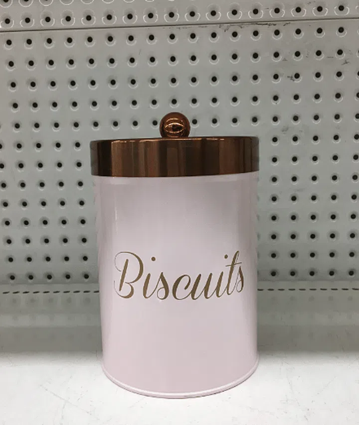 Instead of boring and plain looking containers to store your biscuits, sugar, tea, and coffee, why not by these labelled, sweet baby pink metal tins ($29.99), which have rose gold covers we cannot resist!