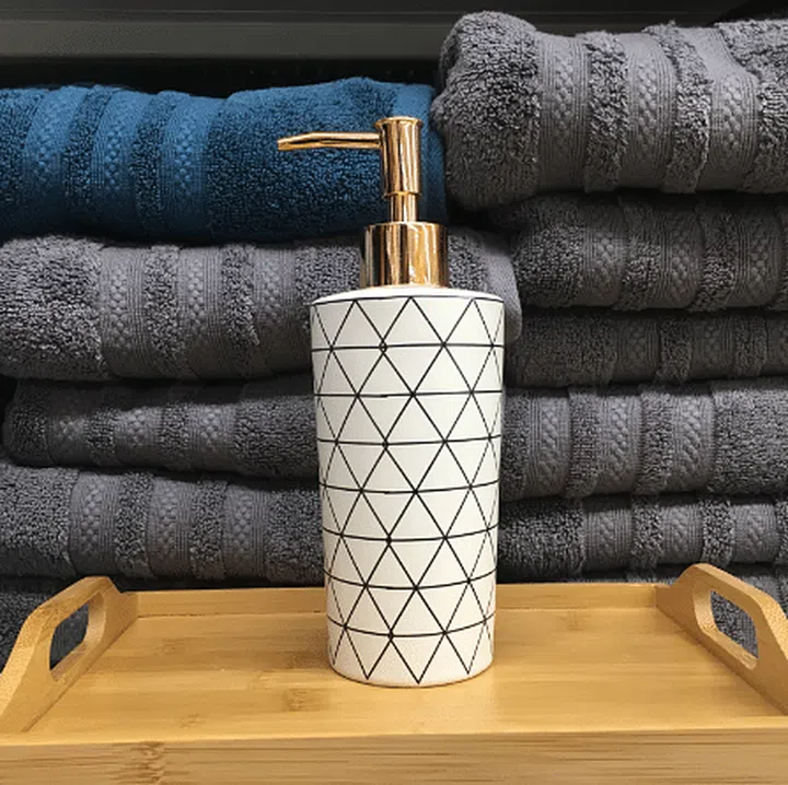 This soap dispenser ($29.99) with its geometric design and rose gold pump will add to the look of your stylish, luxurious, hotel-like bathroom.