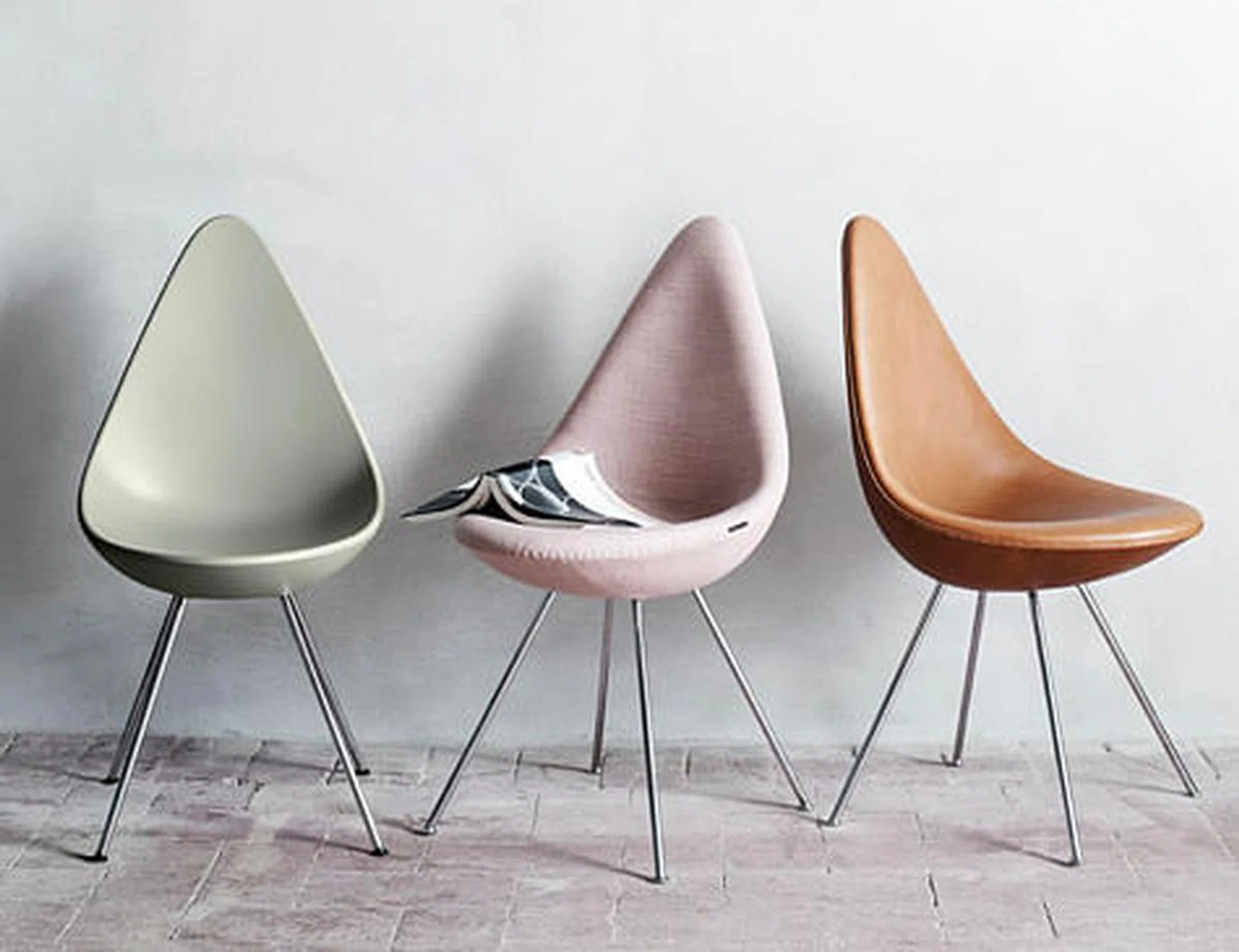 Used exclusively in the SAS Royal Hotel, the Drop chair was never manufactured commercially. It was only in 2014 that Danish design firm Fritz Hansen decided to relaunch it. Its manufacturing process has since been updated with new technology, making way for new versions of the seat. It is now available in its original upholstered version, and in plastic with a cushioned seat. It comes in six colours.