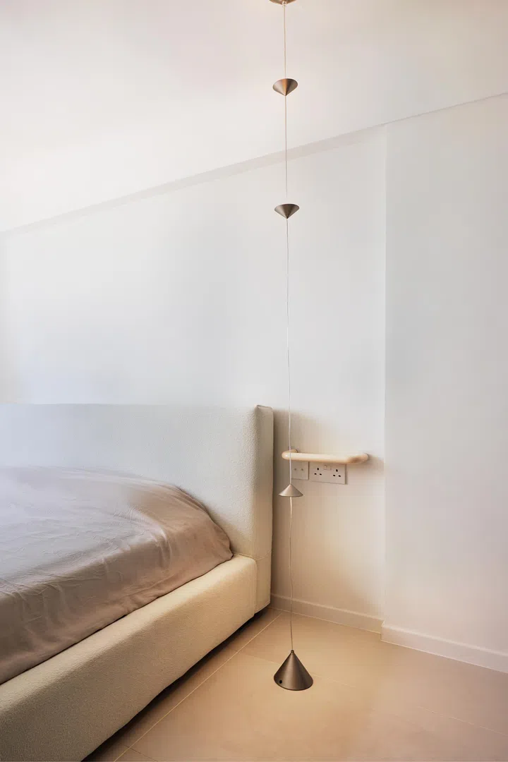 This is especially important for walls and ceiling colours. The stylist opted for “Sail White” Odour-less from Nippon Paint.