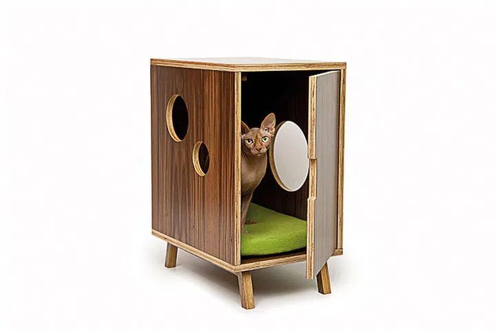 The Compact I Cabinet can be used as a bed for your cat or as a litter tray. From modernistcat.com.