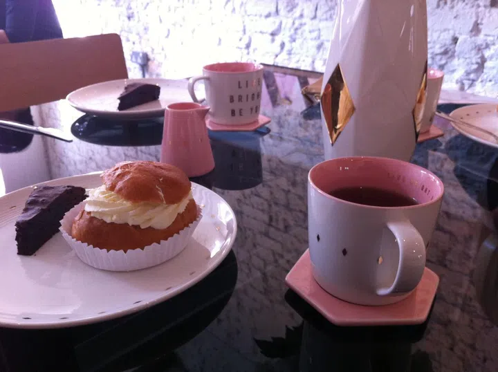 Sweets are a must for fikas, so chocolate cakes and cream puffs (from Fika cafe of course!) were served with hot tea or coffee, or cold soda.