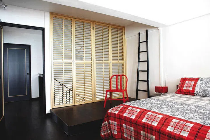 2. As red is a strong colour, it can create big impacts in small doses. Go one step further and contrast pops of red against a jet black surface to play up both the bold colours like in this study area. (Interior design by Space Sense)