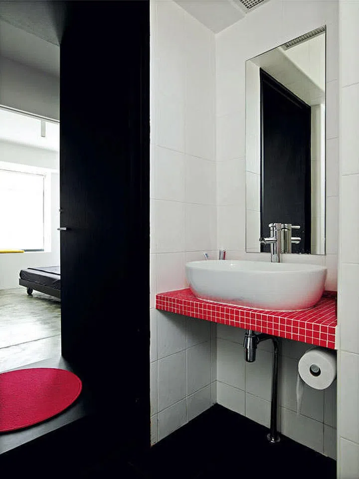 11. Look what wonders a sprightly dash of rouge red can do for a small bathroom! (Interior design by Spacedge Designs)