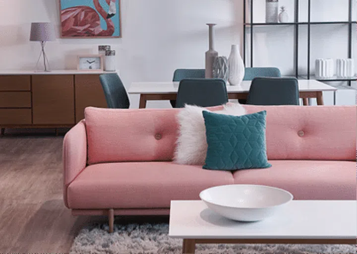 Pink is a colour that’s quite on-trend now, and the Marie Claire Auxerre Full Fabric Three-Seater Sofa ($1,599) in the cheerful hue will bring a welcoming vibe to your living room. It’s a perfect base colour to pair with throws and cushions in contrasting shades.