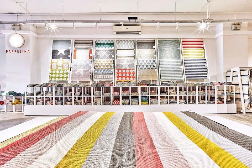 A display dedicated to Swedish rug brand Pappelina.