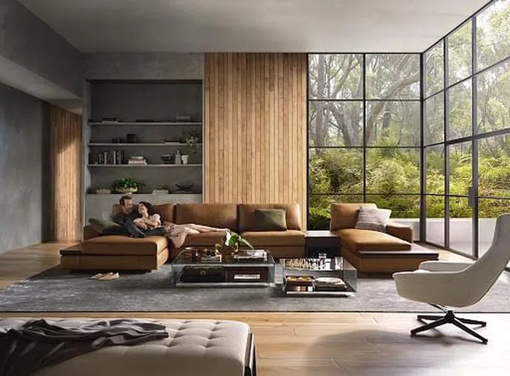 The Jasper sofa can also be custom-made with hidden under-seat storage that is accessed with a single-handed lift. Other add-ons include premium timber veneer shelving with a matching media console and smart accessories such as a wireless charging table, LED reading light and SONOS speaker bracket.
