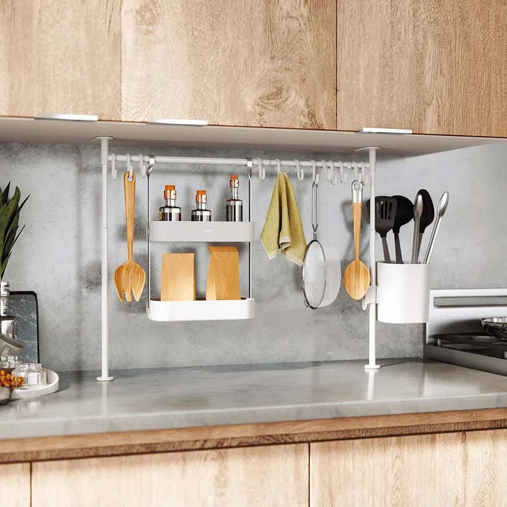 Look out for a multi-use Anywhere Tension Organiser by Hipvan ($49.90) that stores a range of kitchen essentials, from cooking utensils, cutleries, dish towel, and even condiments too.