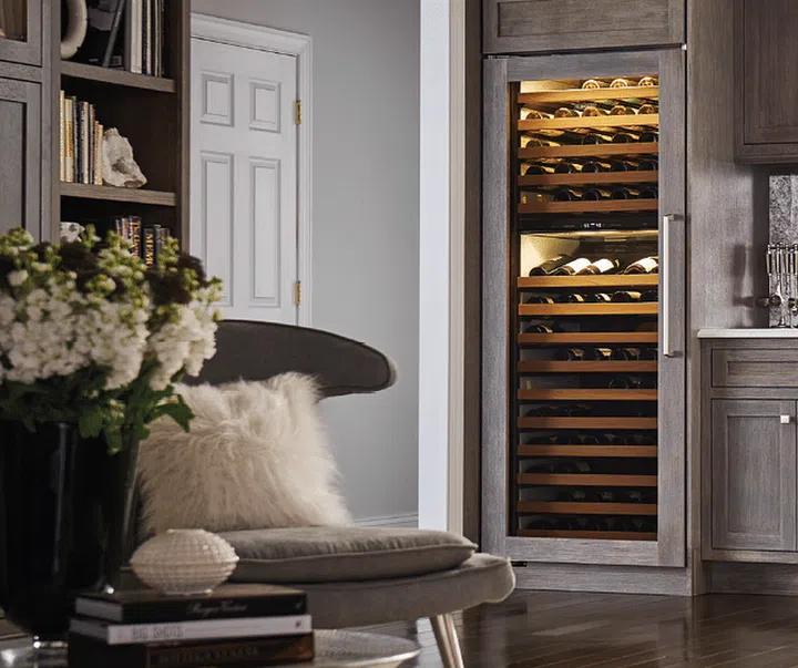 If you’re big on storage, Sub-Zero’s 30” Classic Column Wine Storage is for you. It’s carefully calibrated to control the temperature, light, humidity and even vibration so wine is kept in optimal condition. It has two individually controlled storage zones – one for red, one for white – with dual evaporators to maintain moderate, consistent humidity. Another plus: UV-resistant, bronze-tinted glass prevents damage from sun exposure.