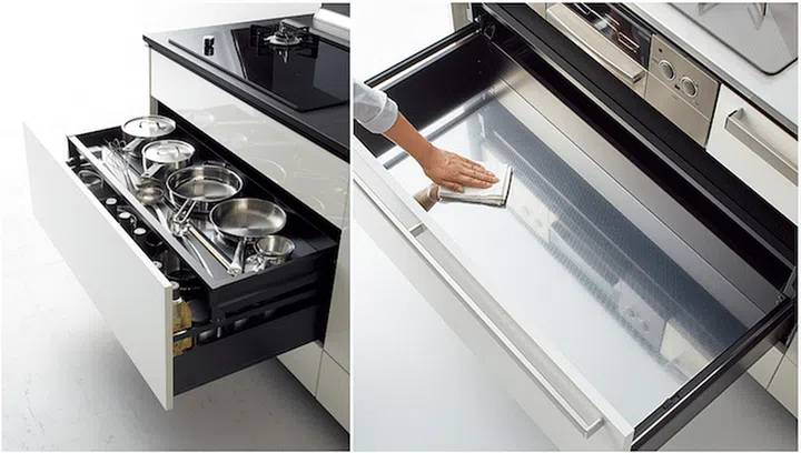 To complement these kitchen systems, choose Song-Cho’s latest Japanese eco faucet KM5021TEC, which comes with a pullout hose; you can adjust the water flow to get a fine-grain shower or straight water flow.
