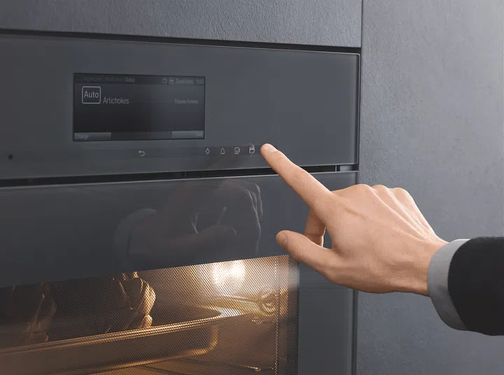 Miele’s ovens are cool on all sides. The latest in its range – Artline – has exteriors that are kept cool as several panes of glass insulate the oven door effectively and ensure a lower temperature on the outside.