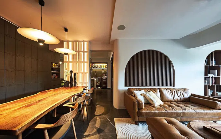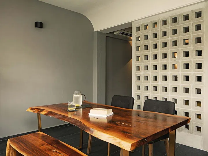 Apart from the aesthetic appeal from natural materials, the use of wood invites a sense of warmth and harmony to the environment. The tactile grain textures from a piece of raw wood slab adds to the rich sensory experience, while creating a connection to the great outdoors.