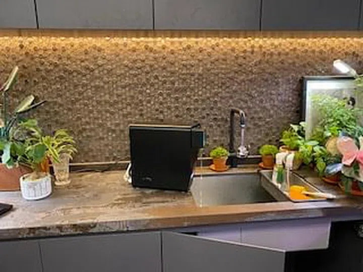 Now I have to say that the Livingcare Jewel unit is REALLY compact! It is only 13cm wide, which means it's not going to look like an eyesore on my counter. Initially I wanted to place the unit at the corner to hide it, but after discussing with Jack, he recommended a much better position close to the sink area.
