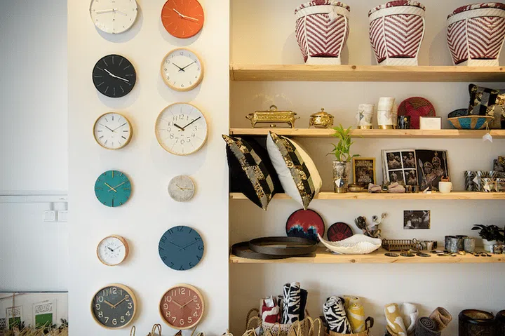 Denise sources her collection from all over the world, including Africa and India. There are also gleaming Moroccan trays, modern batikproducts, and handmade, minimalist clocks from Japan. It exudes a bohemian look that appeals to the inquisitive and adventurous.