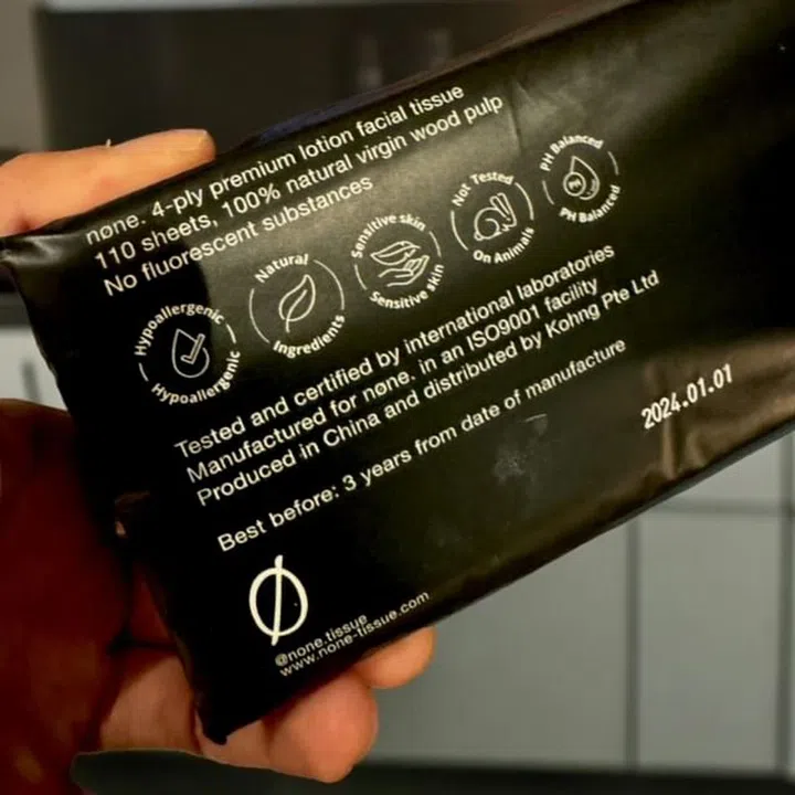 When I got to hold a pack of nøne tissue, the black packaging immediately captivated me. Rarely do you ever come across such amazing-looking tissues. Not sure why, but trying to buy tissues that come in a plain, nondescript matte-coloured packaging at the supermarket is like trying to score free tickets to a Taylor Swift concert - impossible.