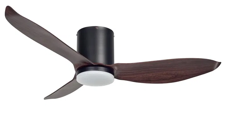 Aeroair's Hugger Series was designed specifically for HDB flats and condos that come with low ceilings. When installed, the ceiling fan extends only 19cm from the ceiling. It is also available in 35", 46" and 52" and in black, white, Frappe, Latte, black/light wood, as well as white/light wood. We like that the thin silhouette of the three blades are presented in a sleek, organic form, plus it also has a dimmable 24W tri-clour LED lamp in the middle.
