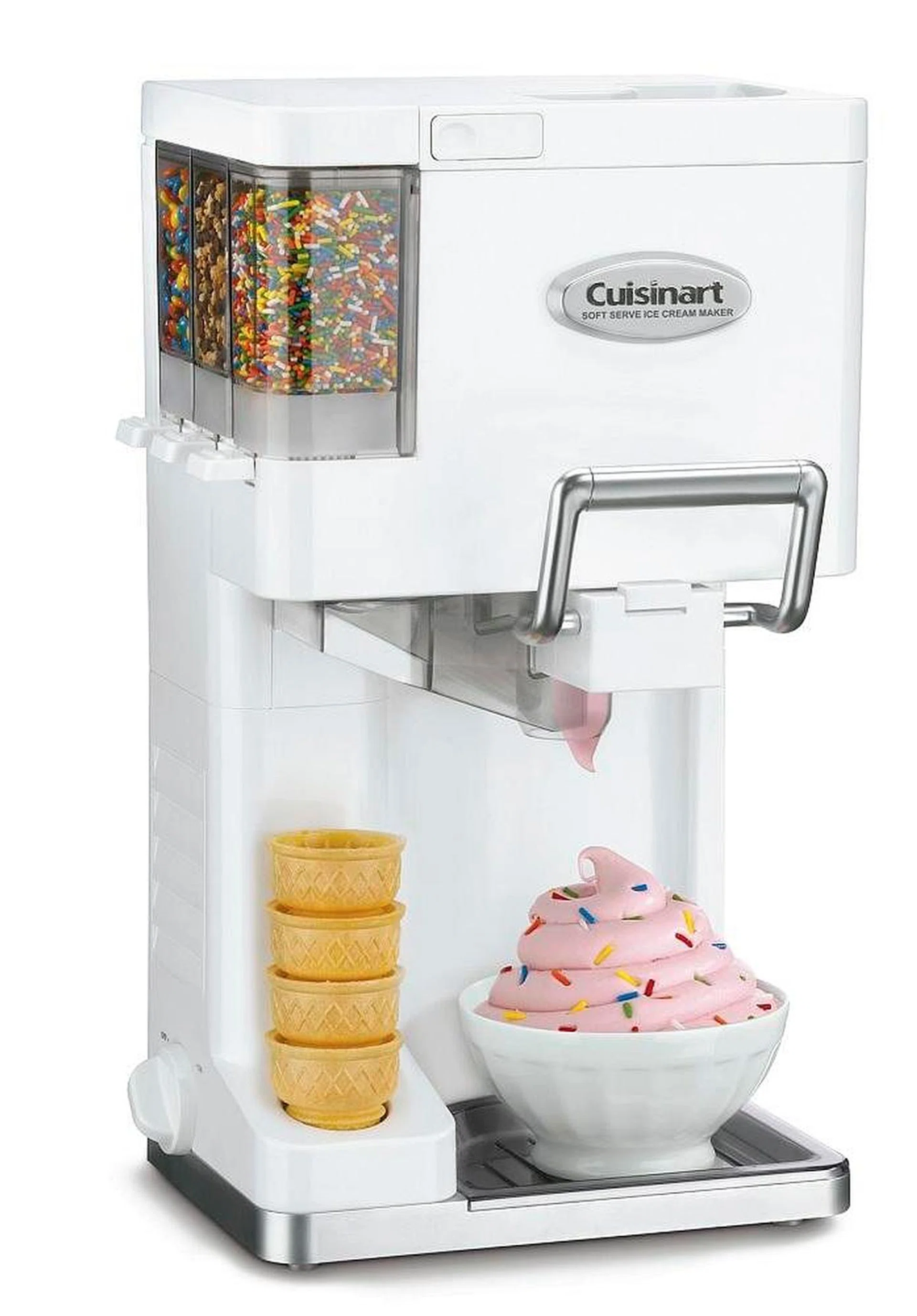 The Cuisinart Mix It In Soft Serve Ice Cream Maker makes soft serve ice-cream, as well as sorbet, sherbet and frozen desserts.
