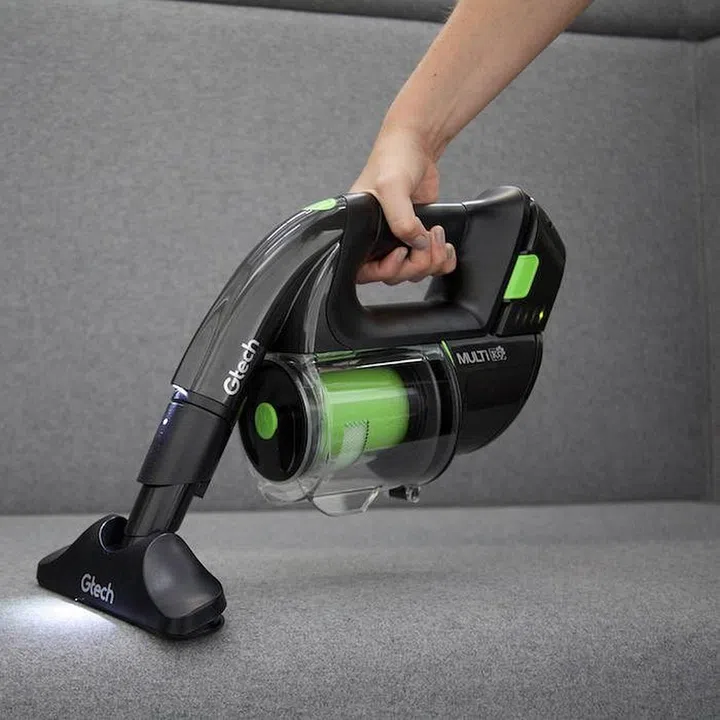 It’s basically foolproof to operate with only one start/stop button, glides smoothly on floors and rugs, and its slender design easily slides under low furniture and around corners. Both the main unit and floor cleaner head are fitted with LED lights so you can work just as well in dimmer spots. The K9 also comes with refillable scented cartridges you pop into the filter that actually produce a pleasant scent as you clean!