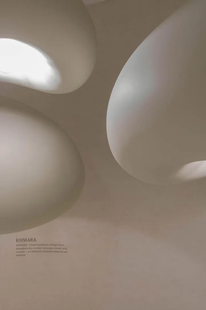 The gallery’s first floor features Makhno Studio’s sculptural pendant lights and collectible souvenirs inspired by studio founder Sergey Makhno’s Ukrainian culture.