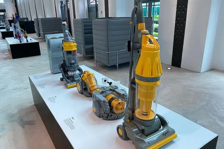 The evolution of Dyson’s vacuum cleaners over the years, on display at its headquarters at St James Powerhouse in Singapore.
