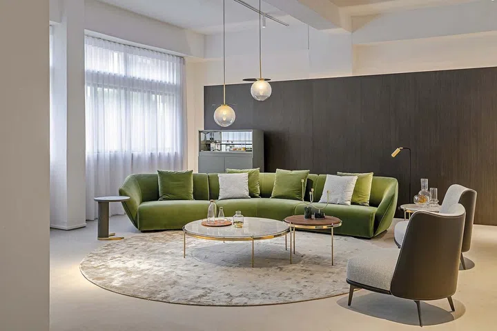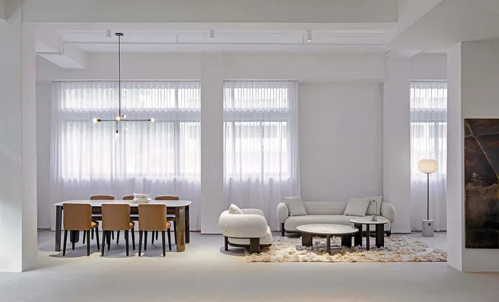 The showroom features a constellation of living room and bedroom settings that showcase the potential of each piece and how they look paired with each other.