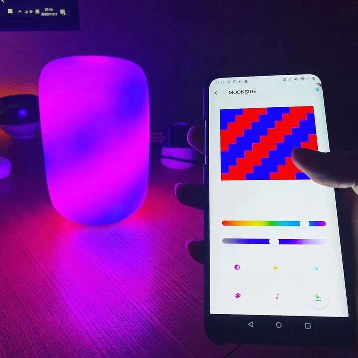 The interface of the Moonside app is rather straightforward, you tap on the notch beside the the lamp on the interface to turn it on. Note: The percentage figure below the word 'MOONSIDE' is NOT the amount of battery power remaining. It indicates the intensity of the light actually. We reiterate: this lamp needs to be wired in and plugged up in order to work. Wanna bring it to the beach, not a problem as long as you can hook it up to a battery pack though.