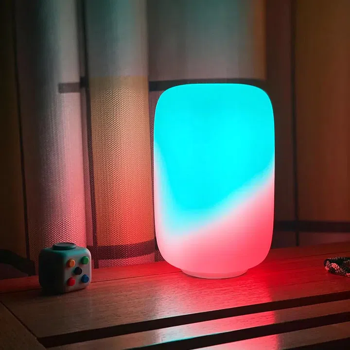 Okay let's start with the basics. Lamp One is a rather portable smart desk lamp that can glow in different colours. It measures 10.1cm (L) x 10.1cm (W) x 16.5cm (H), just the right size for any sort of set-up really. It looks great in a bedroom, on your gaming table, next to the TV or even in your study or home office. The rounded curves give it a sensual and organic look, and its frosted matte finish makes the lamp resemble a traditional Japanese paper lantern. There are no buttons on the surface to detract from the perfect-ness of the lamp, all the controls are through its downloadable app, which makes total sense when you realise you can just keep the lamp on all day (we have). The use of LED nodes inside means the lamp uses little electricity. However, do note that this lamp needs to be plugged into a power source in order to work. Unlike other smart devices, it doesn't come with a built-in battery.