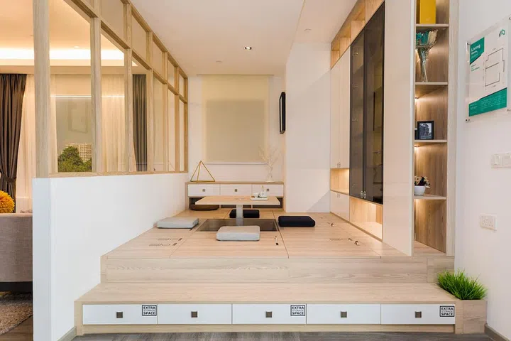 With the aim of offering efficient and competitively priced home furniture, the showroom is modelled after typical three- and four-bedroom apartments to showcase functional, customisable storage ideas, space-maximising strategies and stylish cabinetry designs for living rooms, bedrooms, walk-in wardrobes and even kitchens, along with the budget required to achieve these completed “homes”.