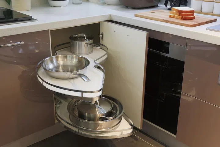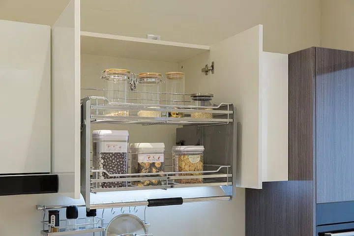 A wide range of accessories like pull-out organising trays and rotating racks for kitchens, and dedicated shelves for pants and ties in the wardrobes offer plenty of possibilities to suit all lifestyle and user preferences, as well as home and room sizes.
