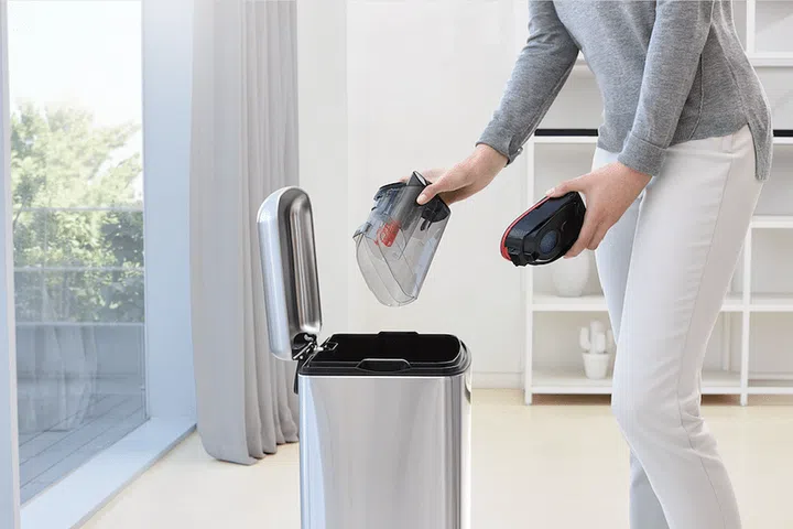 After you’ve completed the cleaning, clearing the EZClean dustbin is easy; a quick pull of the lever lets you dispose of the contents within. The bin can also be detached for washing, without you worrying about dirtying your hands.