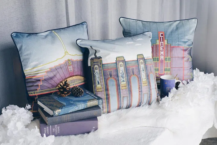 I have these cushions at home, and they work extremely well by being conversation starters themselves! Made of velvet and soft cotton insert, the covers depict scenes of Tanjong Pagar Railway, Clifford Pier and Cathay Building in a stylish Art-Deco style. The warm blue backing and trim help to frame the scenes perfectly, and they are also easy to maintain.