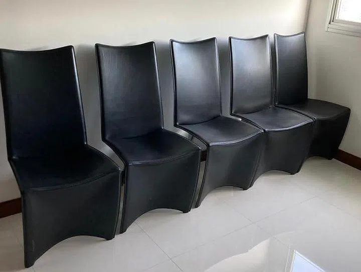 - Take Note: There are noticeable leather scratch marks, with varying conditions for each chair.