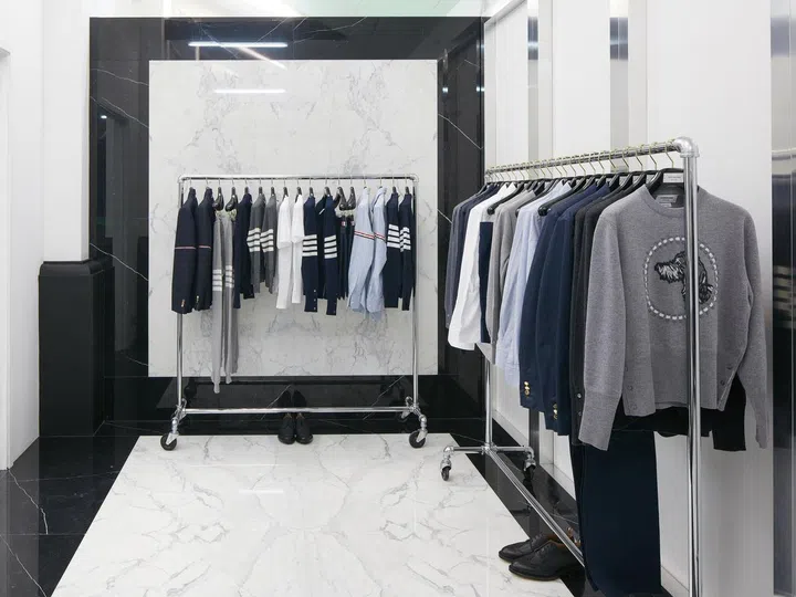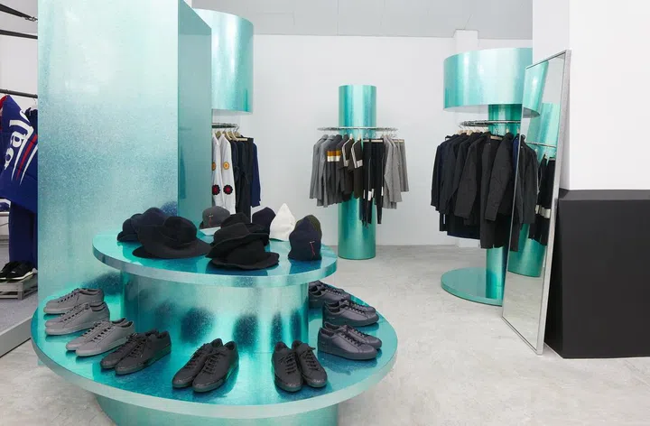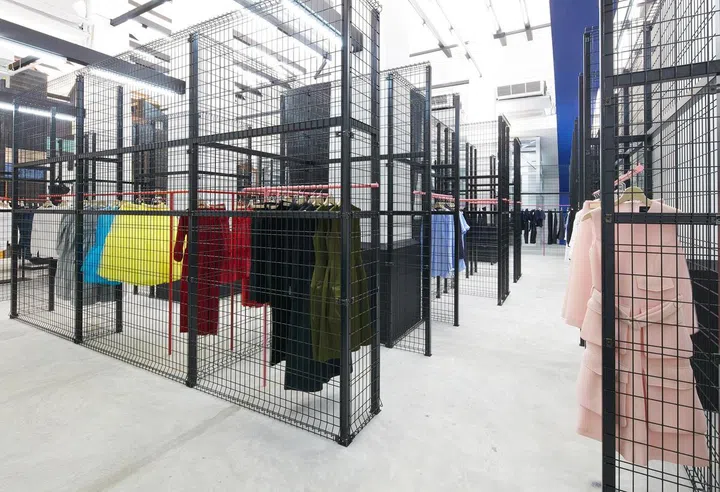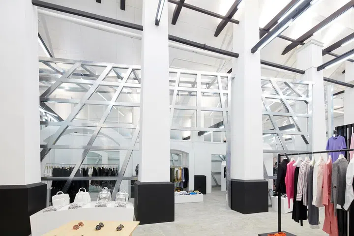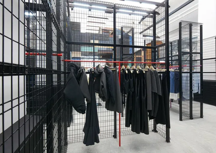 The various labels, such as Balenciaga, Thom Browne and The Row are located in their own sections, while the Comme des Garçons collections can be found inside two glass and steel enclosures.